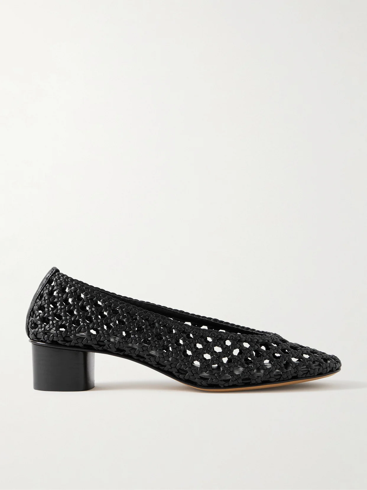 Le Monde Beryl's pumps are woven from strips of leather - the open construction keeps them lightweight and airy. They're set on stacked wooden heels and have subtly squared off toes and high vamps.