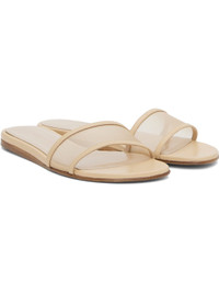 Handcrafted mesh and buffed leather sandals in beige. · Open toe · Logo embossed at padded footbed · Leather sole with rubber injection Supplier color: Sand Upper: textile, leather. Sole: leather, rubber. Made in Italy 251226F124002