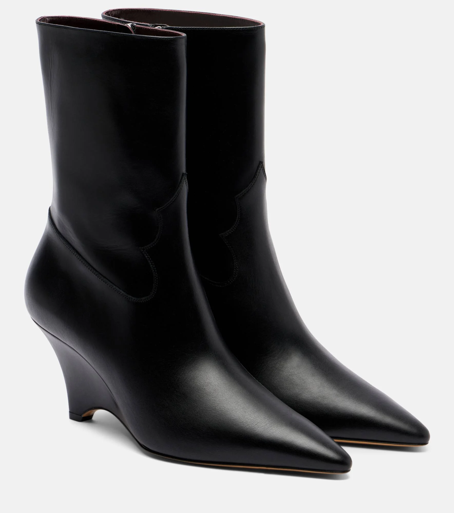The Camille boots from Le Monde Beryl exude timeless elegance. Crafted in Italy from leather, the pair features pointed toes and sculptural 70mm wedge heels. Product Details - Upper: calf leather - Lining: leather - Sole: leather insole and sole - Color: black - Toe shape: pointed toe - Made in Italy - Includes: dust bag, shoe box - Designer color name: Black - Item color: black - Closure: zipped side - Item number: P01143162 Size & Fit - True to size - European sizes - 7cm-3" heel