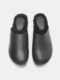 Clog / Black Leather Shearling
