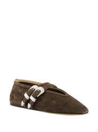 double-buckle suede ballet flats Highlights - Brown - Suede upper - V-shaped vamp - Double buckle fastening - Flat sole - Round toe Made in Italy Composition Lining: Leather 100% Outer: Suede 100% Sole: Leather 100%