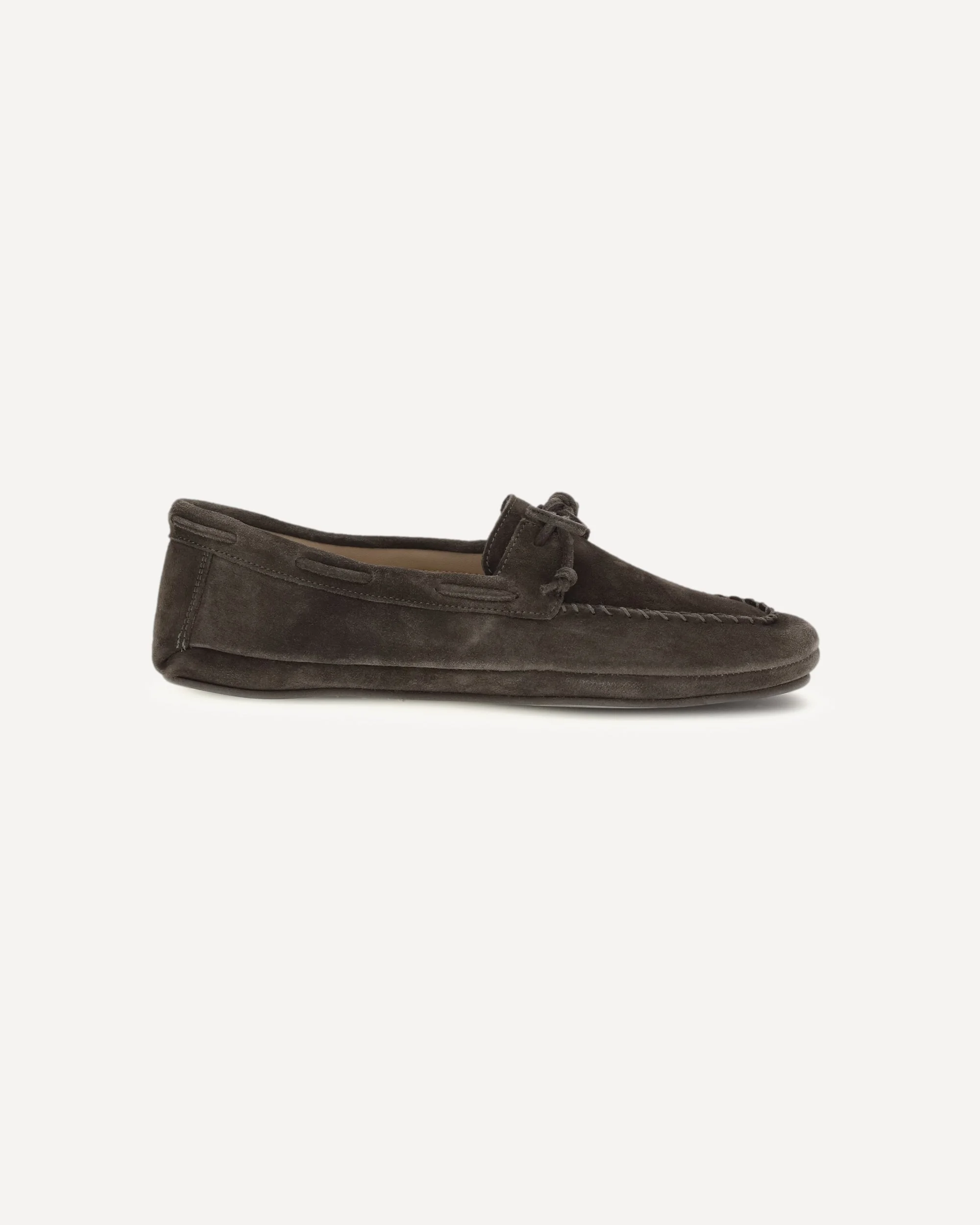 The Driver loafers by Le Mond Beryl are handcrafted from dove gray suede leather, which is water-resistant to ensure durability and practicality. The woven details add a touch of sophistication, while the padded calfskin insole ensures all-day comfort. The rubber sole completes the design, offering stability and grip. An elegant and functional model, ideal for those seeking the perfect balance between style and comfort. DETAILS - Sku: DMCSUEPEP_PEPE - Season: AW25 - Composition: GENERAL 100% Calf Leather Bos Taurus - MADE IN ITALY
