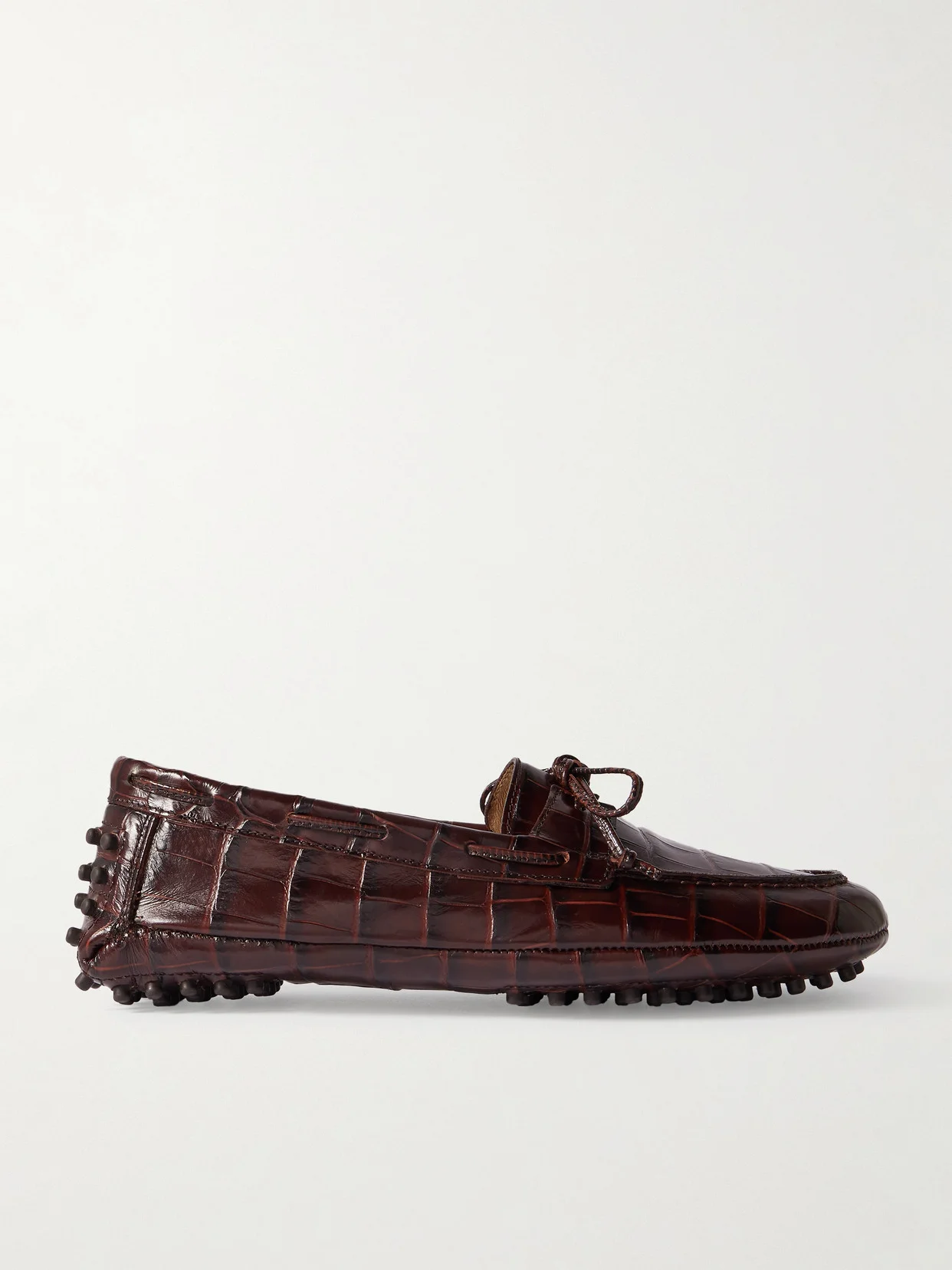 Driver Tie-detailed Croc-effect Leather Loafers
