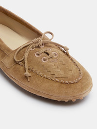 Driver Moccasin / Taupe Suede Embroidered