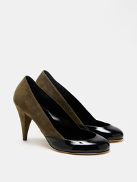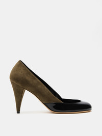 Le Monde Beryl x Kim Sion Sable Pump, handcrafted in khaki suede and black lamb leather with a round toe, low decollete, a cushioned calf-leather insole and a 95 mm triangular heel. Made in Italy. An exclusive capsule created in collaboration with Le Monde Beryl and creative consultant Kim Sion. Orders will be shipped in snakeskin print packaging with a black PVC dust bag. Le Monde Beryl x Kim Sion Sable Pump, handcrafted in khaki suede and black lamb leather with a round toe, low decollete, a cushioned calf-leather insole and a 95 mm triangular heel. Made in Italy. An exclusive capsule created in collaboration with Le Monde Beryl and creative consultant Kim Sion. Orders will be shipped in snakeskin print packaging with a black PVC dust bag.