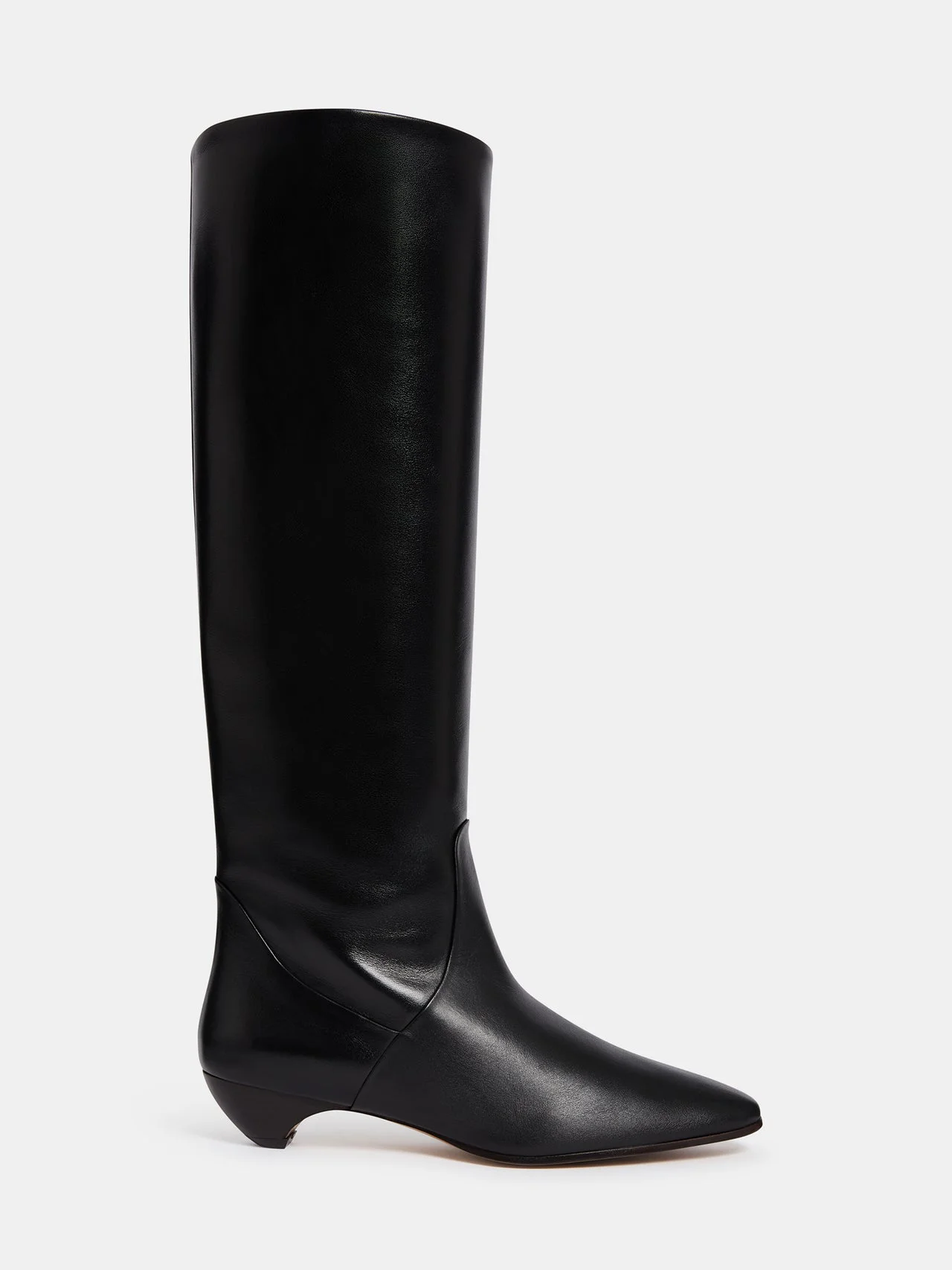 Allegra Riding Boot, handcrafted in black leather with a cushioned calf leather insole and leather pull tabs. 35mm heel. Made in Italy.