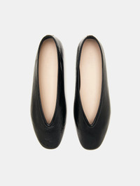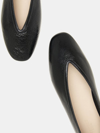 Luna Slipper, handcrafted in black patent leather with a cushioned calf leather insole and leather piping. 8mm heel. Made in Italy.