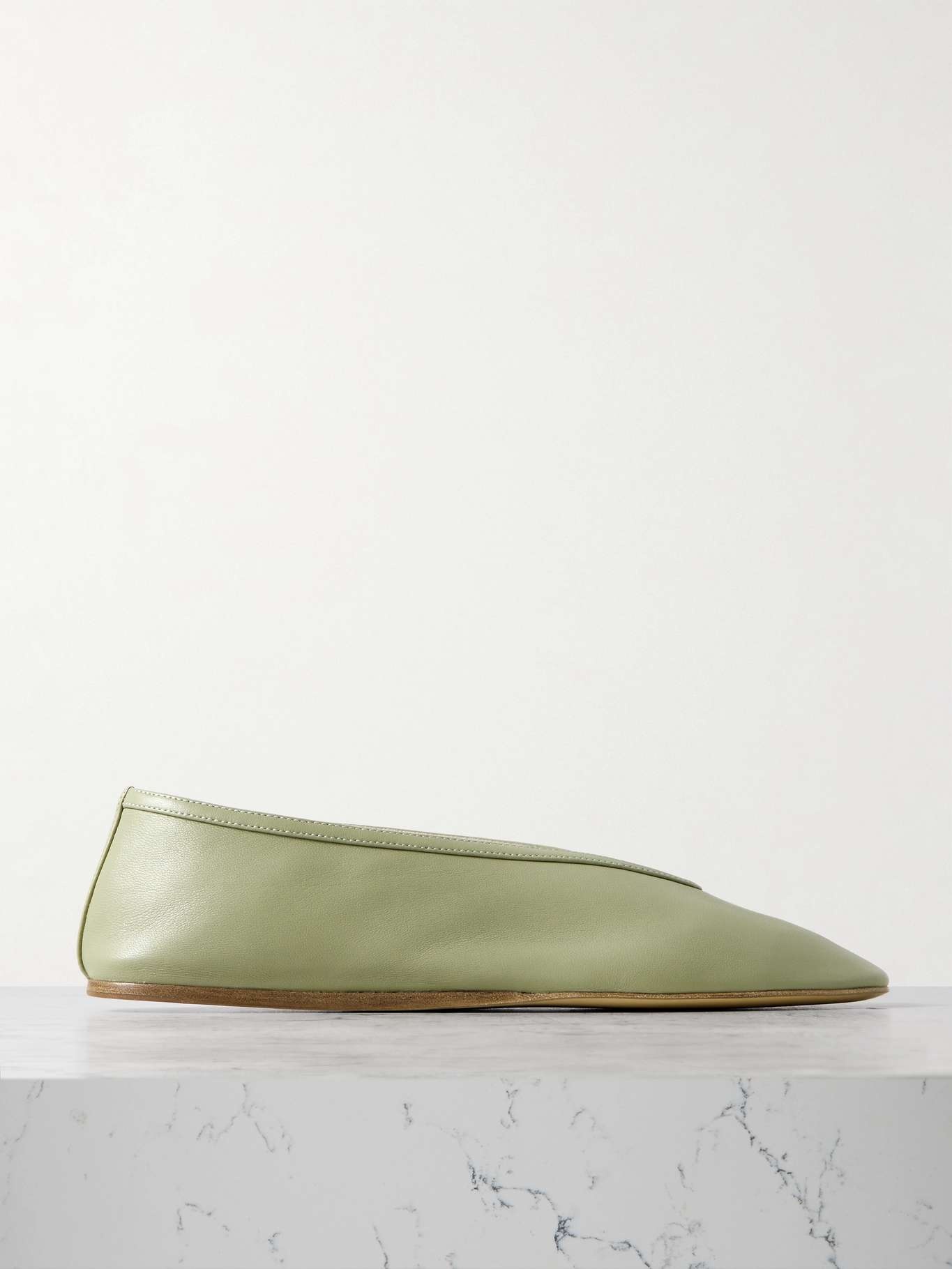 EDITORS'NOTES All of Le Monde Beryl's shoes are handcrafted in Italy using traditional techniques. These 'Luna' ballet flats are made from smooth leather and have comfortable flat soles with cushioned linings. The pointed vamps are a small but crucial detail that makes them especially chic. SIZE & FIT - Fits true to size, take your normal size - Italian sizing DETAILS & CARE - Slight heel - Green leather (Lamb) - Slip on - Designer color: Pistachio