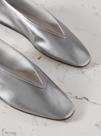 EDITORS'NOTES All of Le Monde Beryl's shoes are handcrafted in Italy using traditional techniques. These 'Luna' ballet flats are made from metallic silver leather and have comfortable flat soles with cushioned linings. The pointed vamps are a small but crucial detail that makes them especially chic. SIZE & FIT - Fits true to size, take your normal size - Italian sizing DETAILS & CARE - Slight heel - Silver leather (Lamb) - Slip on