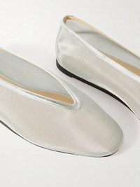 Luna Metallic Leather-trimmed Mesh Ballet Flats