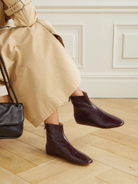 Le Monde Beryl's understated shoes are hand-finished in Italy using traditional techniques. Inspired by riding styles, these 'Luna' ankle boots are made from supple crinkled-leather and have comfortable cushioned linings and flat soles. Size & Fit - Fits true to size, take your normal size - Italian sizing Details & Care - Slight heel - Burgundy crinkled-leather (Lamb) - Zip fastening along back - Designer color: Aubergine
