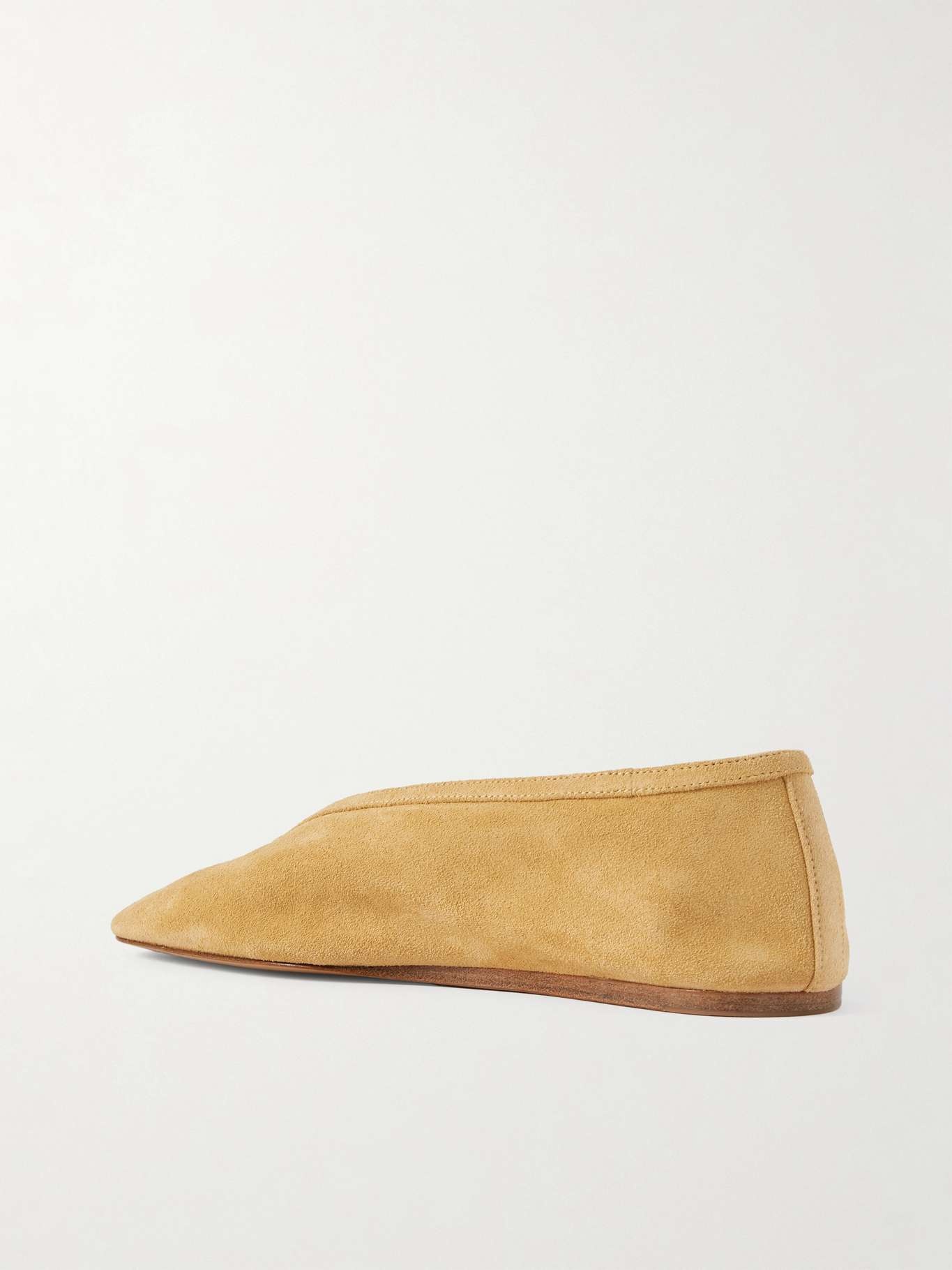 EDITORS'NOTES All of Le Monde Beryl's shoes are handcrafted in Italy using traditional techniques. These 'Luna' ballet flats are made from smooth suede and have comfortable flat soles with cushioned linings. The pointed vamps are a small but crucial detail that makes them especially chic. SIZE & FIT - Fits true to size, take your normal size - Italian sizing DETAILS & CARE - Slight heel - Beige suede (Goat) - Slip on