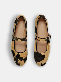 Mary Jane, handcrafted in tiger print Bevilacqua velvet with buckle-fastening, in a new sacchetto construction, with a soft cushioned calf leather insole and grosgrain piping. 13mm heel. Made in Italy.
