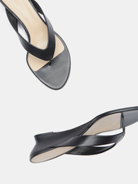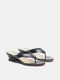 Micro Wedge Thong, handcrafted in black calf leather with a cushioned calf leather insole and 40mm heel. Made in Italy.