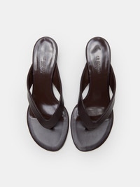 Micro Wedge Thong, handcrafted in plum leather with a cushioned calf leather insole and 40mm heel. Made in Italy.