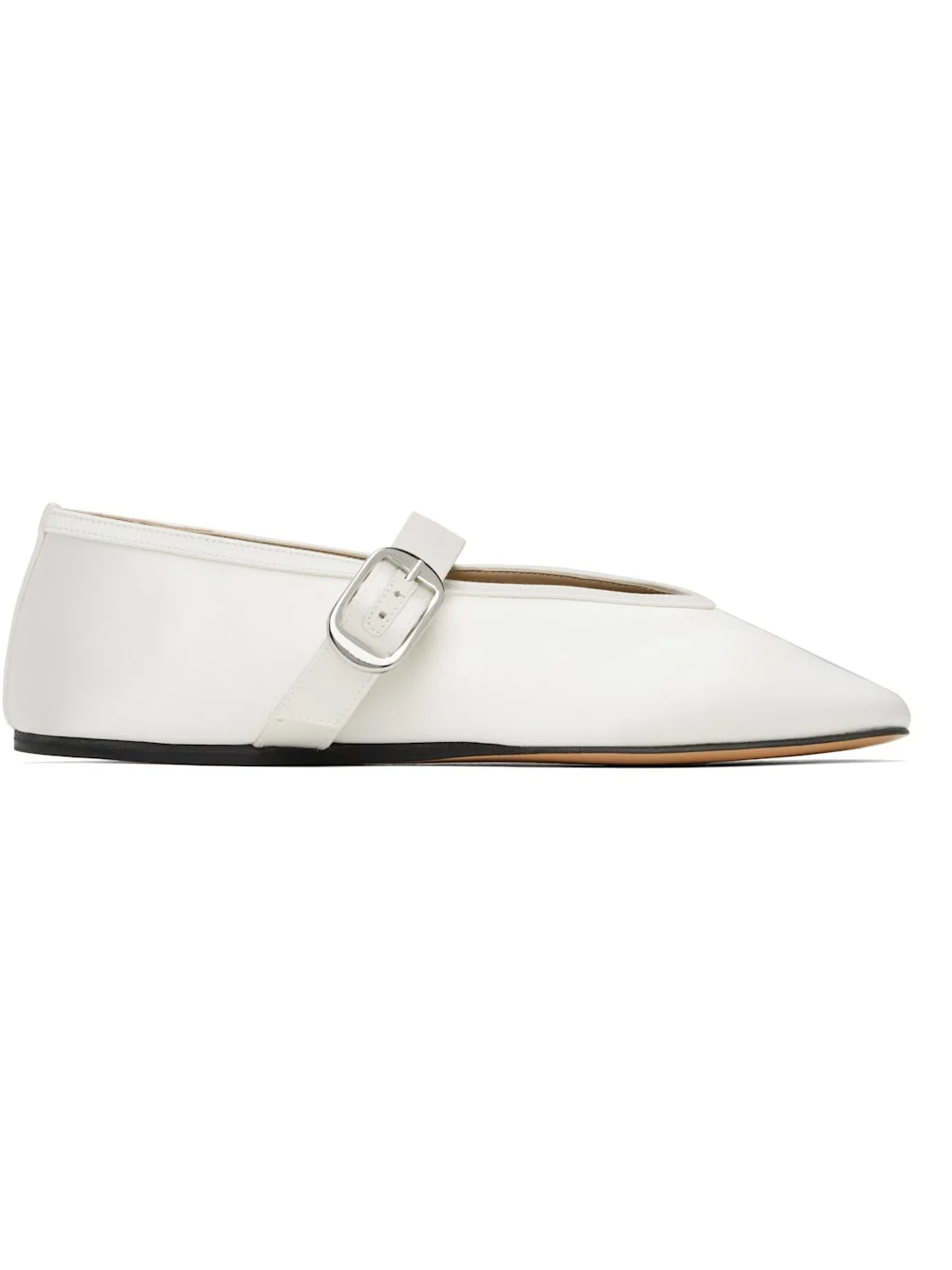 Satin ballerina flats in off-white. · Square toe · Pin-buckle strap at vamp · Buffed leather and suede lining · Polished leather sole with rubber injections Supplier color: Ivory Upper: textile. Sole: leather, rubber. Made in Italy 251226F118016