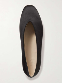 EDITORS'NOTES EXCLUSIVE AT NET-A-PORTER. Le Monde Beryl's footwear is carefully handcrafted in Florence, Italy by skilled artisans. These 'Regency' ballet flats are made from black satin and have angular, pointed vamps traced with tonal grosgrain. SIZE & FIT - Fits true to size, take your normal size - Italian sizing DETAILS & CARE - Slight heel - Black satin and grosgrain - Slip on