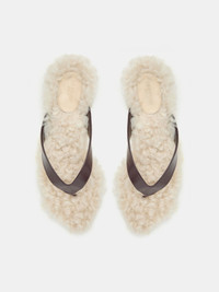 Micro Wedge Thong / Plum Leather with Latte Shearling