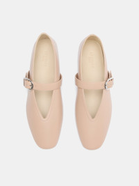 Stella Slipper in fawn lamb leather with adjustable buckle-fastening, a cushioned calf leather insole and leather piping. 8mm heel. Made in Italy.