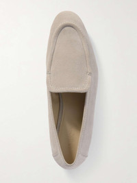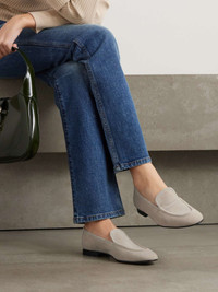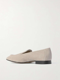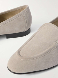 EDITORS'NOTES Traditional Venetian gondolier slippers inspire Le Monde Beryl's footwear. Handcrafted in Italy from suede, these loafers have elegant pointed toes and raised seams along the vamps. The slight heels offer subtle lift, so they’re perfect for everyday wear. SIZE & FIT - Fits true to size, take your normal size - Italian sizing DETAILS & CARE - Slight heel - Stone suede (Goat) - Slip on