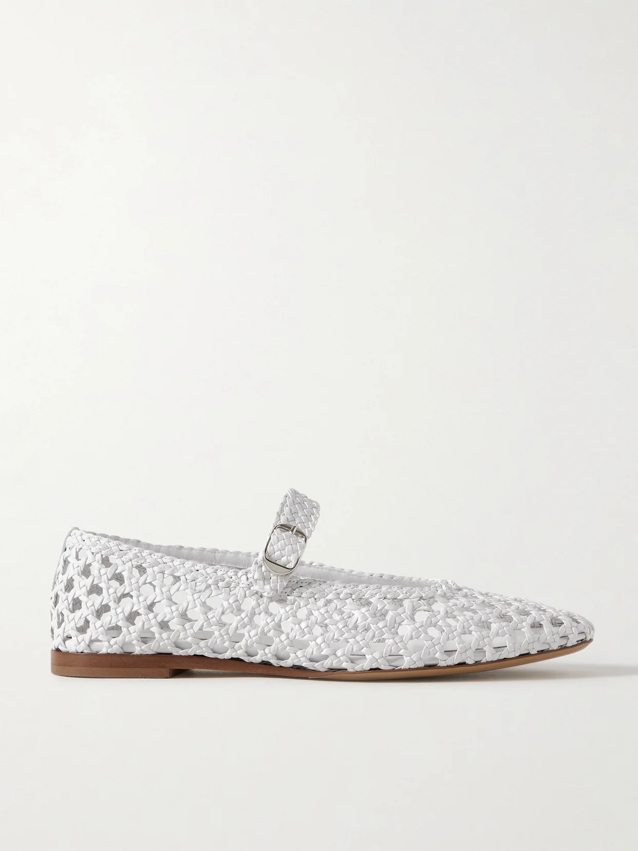 Le Monde Beryl's ballet flats are modeled on traditional Mary Jane styles, re-imagined in a contemporary way with unexpected fabrics. Made in Italy, this pair is woven from smooth white leather and topped with slim buckled straps.