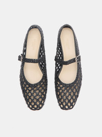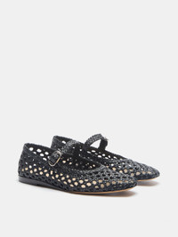Mary Jane, handcrafted in black woven leather with buckle fastening, cushioned calf leather insole. 10mm heel. Made in Italy.