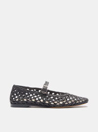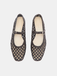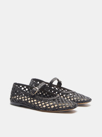 Mary Jane in chocolate woven leather with buckle fastening and cushioned calf leather insole. 10mm heel. Made in Italy.