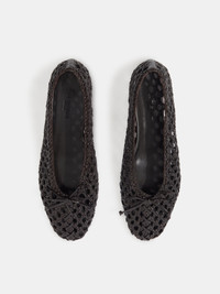 Regency Slipper in chocolate woven leather with a bow detail, and cushioned calf leather insole. 8mm heel. Made in Italy.