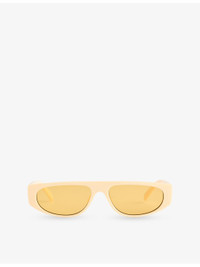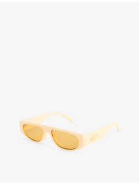 PRODUCT DETAILS - Le Specs polycarbonate sunglasses - 100% polycarbonate; lenses 100% brass - Style number: LSP2552147 - 100% UV-protected lens, logo branded sides, gold-toned hardware, BPA-free, shatterproof, scratch-resistant - Frame shape: D-frame - Lens width 5.6cm, bridge size 1.6cm, temple length 14cm - Wipe with a clean, dry cloth - Comes with hard case and cloth Ref: R04456055