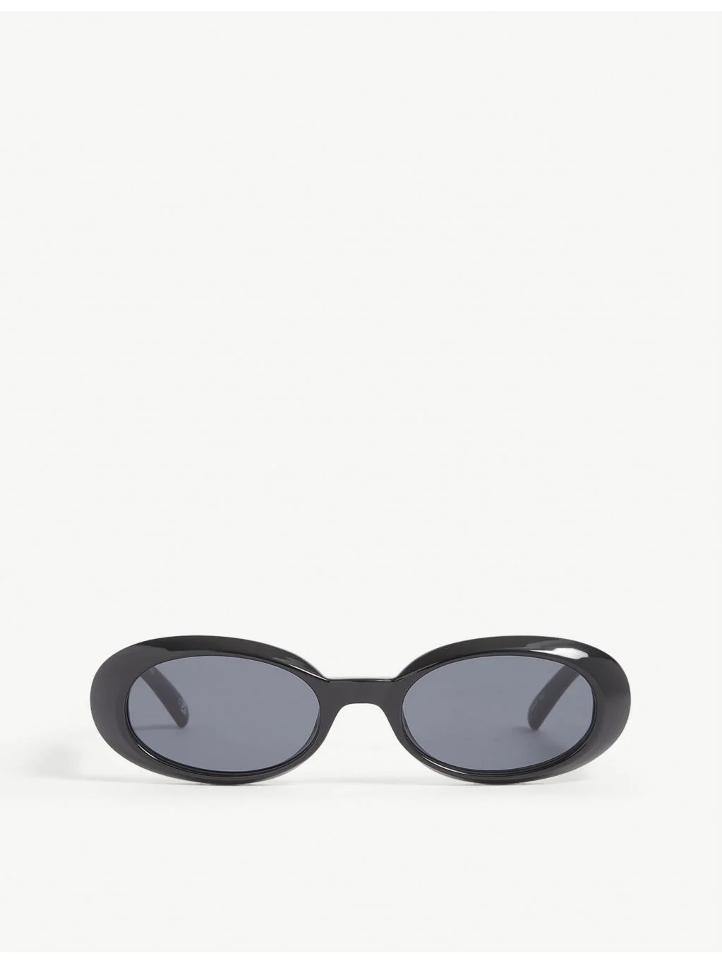 PRODUCT DETAILS - Le Specs polycarbonate sunglasses - Frame material: 100% tritan plastic - Lens material: 100% polycarbonate - Style Number: LSP2102369 - Smoke tint lenses, slim, black frame, lightweight, durable, impact resistant, shatterproof, scratch resistant - Frame shape: Oval - UV protection Category 3 - Frame width: 15cm - Case type: Soft case - 6 months brand warranty - Wipe with a soft, dry cloth Ref: R03856146