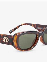 PRODUCT DETAILS - Le Specs sunglasses - Frame 100% polyester; lenses 100% polycarbonate - Style number: LSU2429738 - UV protection, tinted lenses, shatter-proof and scratch-resistant polycarbonate lenses, tortoiseshell frame - Frame shape: rectangle - Frame width 14c.3m, frame height 4.2cm, lens width 5.5cm, bridge width 1.9cm, temple length 14.5cm - Wipe with a clean, dry cloth - Comes with a pouch and cloth Ref: R04438221