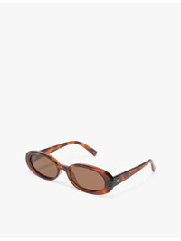 PRODUCT DETAILS - Le Specs polycarbonate sunglasses - Style number: 2452396 - 100% polycarbonate; lenses 100% polycarbonate - Slips on - Tinted lenses, tortoise frame, slimline design, gold-tone hardware, durable, impact resistant, shatterproof, scratch resistant - Frame shape: oval shape - Lens width: 5.5cm, bridge size: 1.5cm, temple length: 14cm - Wipe with a clean, dry cloth - Case type: Comes with a soft case and cloth Ref: R04351936