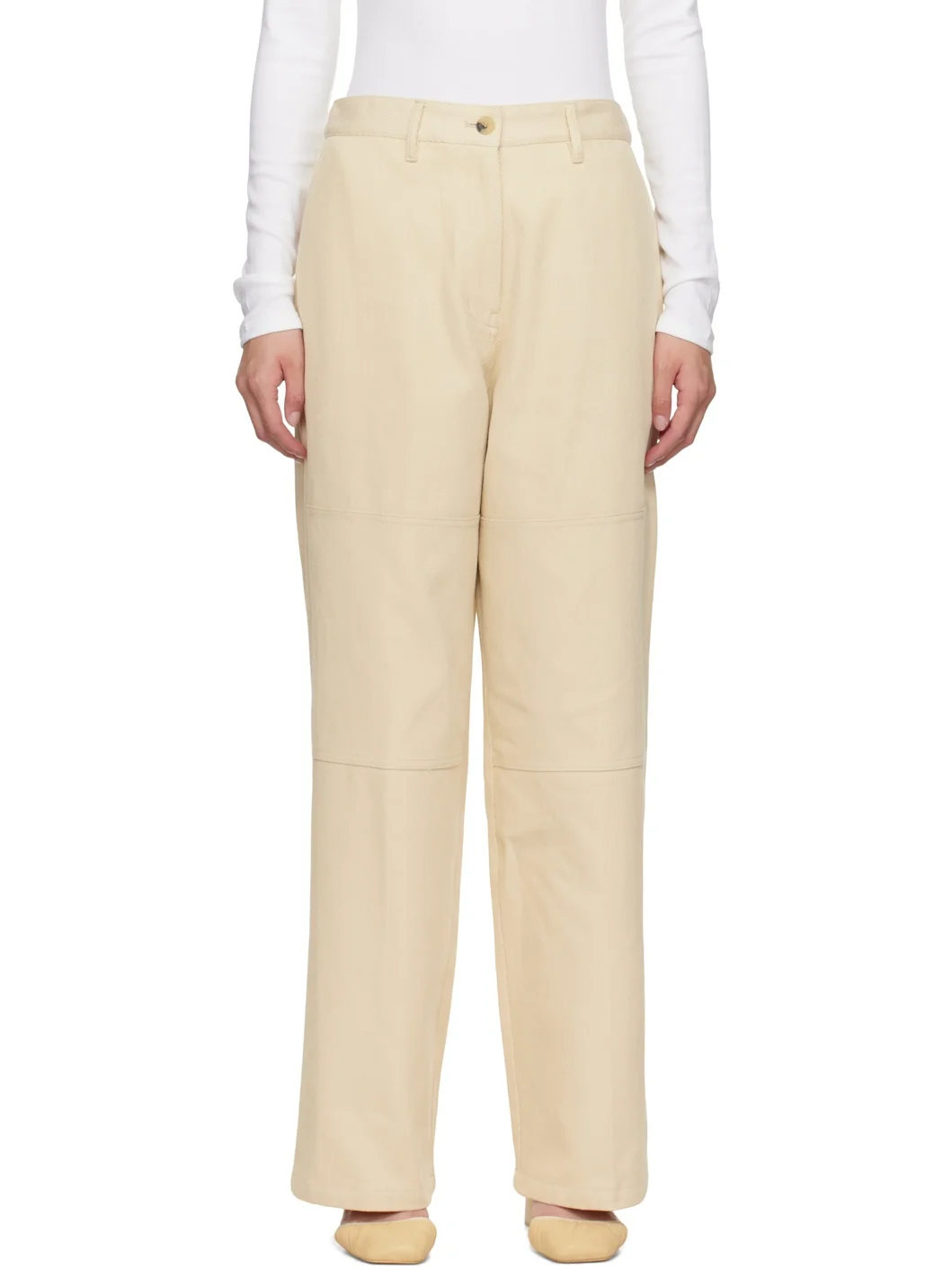 Cotton cavalry twill trousers. · Concealed drawstring at partially elasticized waistband · Four-pocket styling · Zip fly Supplier color: Ivory Body: 100% cotton. Trim: 100% cotton. Made in South Korea 252495F087000