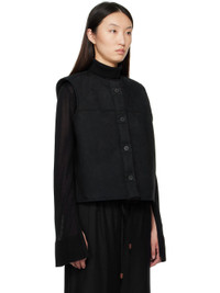 Reversible faux-suede vest. Reverse in black faux-shearling. · Round neck · Button closure · Seam pockets Supplier color: Black Body: 60% polyester, 30% wool, 10% polyamide. Lining: 100% polyester. Made in South Korea 252495F064000