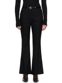 Flared stretch wool barathea trousers. · Belt loops and detachable pin-buckle belt · Four-pocket styling · Zip-fly · Darts at back waistband Supplier color: Black 98% wool, 2% elastane. Made in South Korea 251495F087001