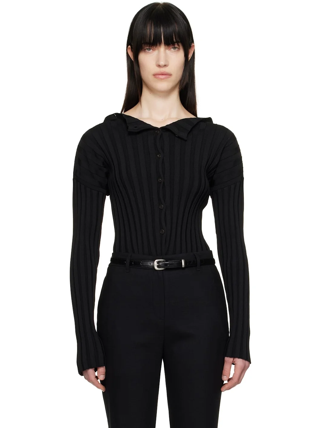 Rib-knit rayon-blend cardigan. · Boatneck · Button closure · Dropped shoulders Supplier color: Black 80% rayon, 20% nylon. Made in South Korea 251495F095001
