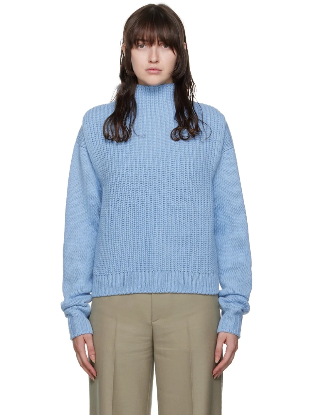 Knit acrylic-blend sweater. · Round neck · Rib knit hem and cuffs Rib knit acrylic-blend vest. Mock neck. Supplier color: Blue 35% acrylic, 25% polyamide, 25% wool, 15% alpaca. Made in South Korea 222495F096001