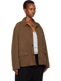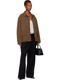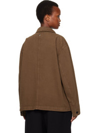 Overdyed non-stretch denim jacket. · Spread collar · Concealed button closure · Patch pocket and flap pockets at front · Buttoned barrel cuffs · Logo hardware at back collar · Welt pocket at interior · Logo-engraved horn hardware Supplier color: Brown 100% cotton. Made in South Korea 252495F063006