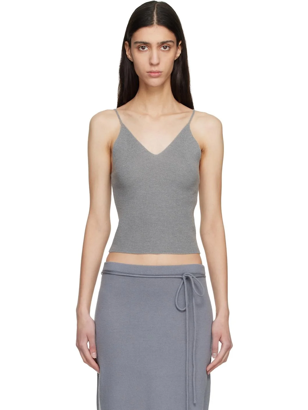 Rib-knit wool- and alpaca-blend tank top. · V-neck · Fixed spaghetti straps Supplier color: Grey 46% nylon, 38% wool, 16% alpaca. Made in South Korea 261495F111000