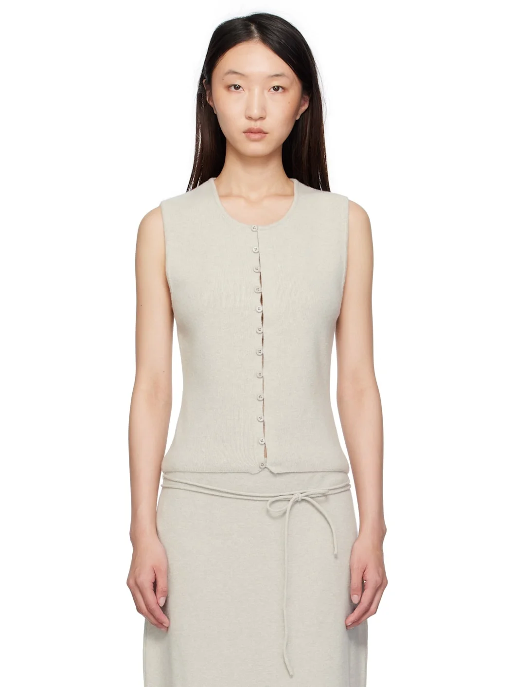 Brushed rib-knit wool-blend tank top. · Round neck · Button closure Supplier color: Gray 65% wool, 26% nylon, 9% cashmere. Made in South Korea 252495F111000