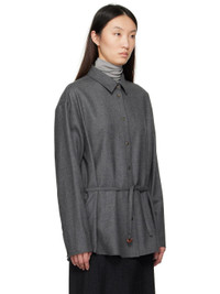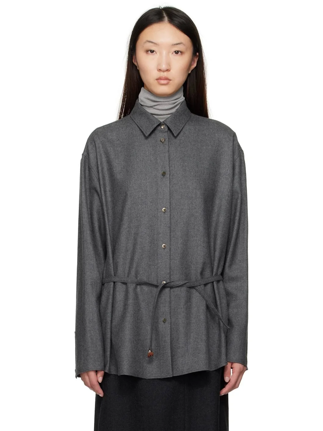 Brushed wool twill shirt. · Spread collar · Button closure · Belt loops and detachable self-tie belt · Shirttail hem · Dropped shoulders · Button fastening at cuffs Supplier color: Gray 100% wool. Made in South Korea 252495F109000