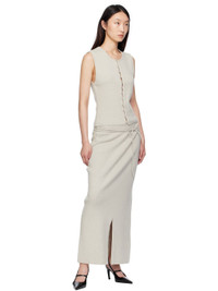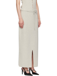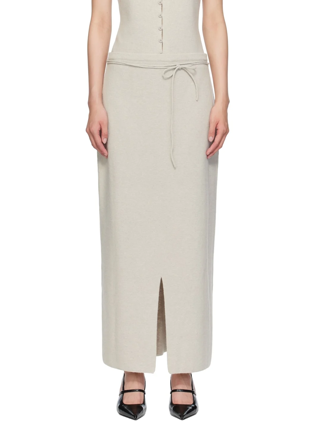 Brushed rib-knit wool-blend maxi skirt. · Detachable drawstring at elasticized waistband · Central slit at hem Supplier color: Gray 65% wool, 26% nylon, 9% cashmere. Made in South Korea 252495F092002