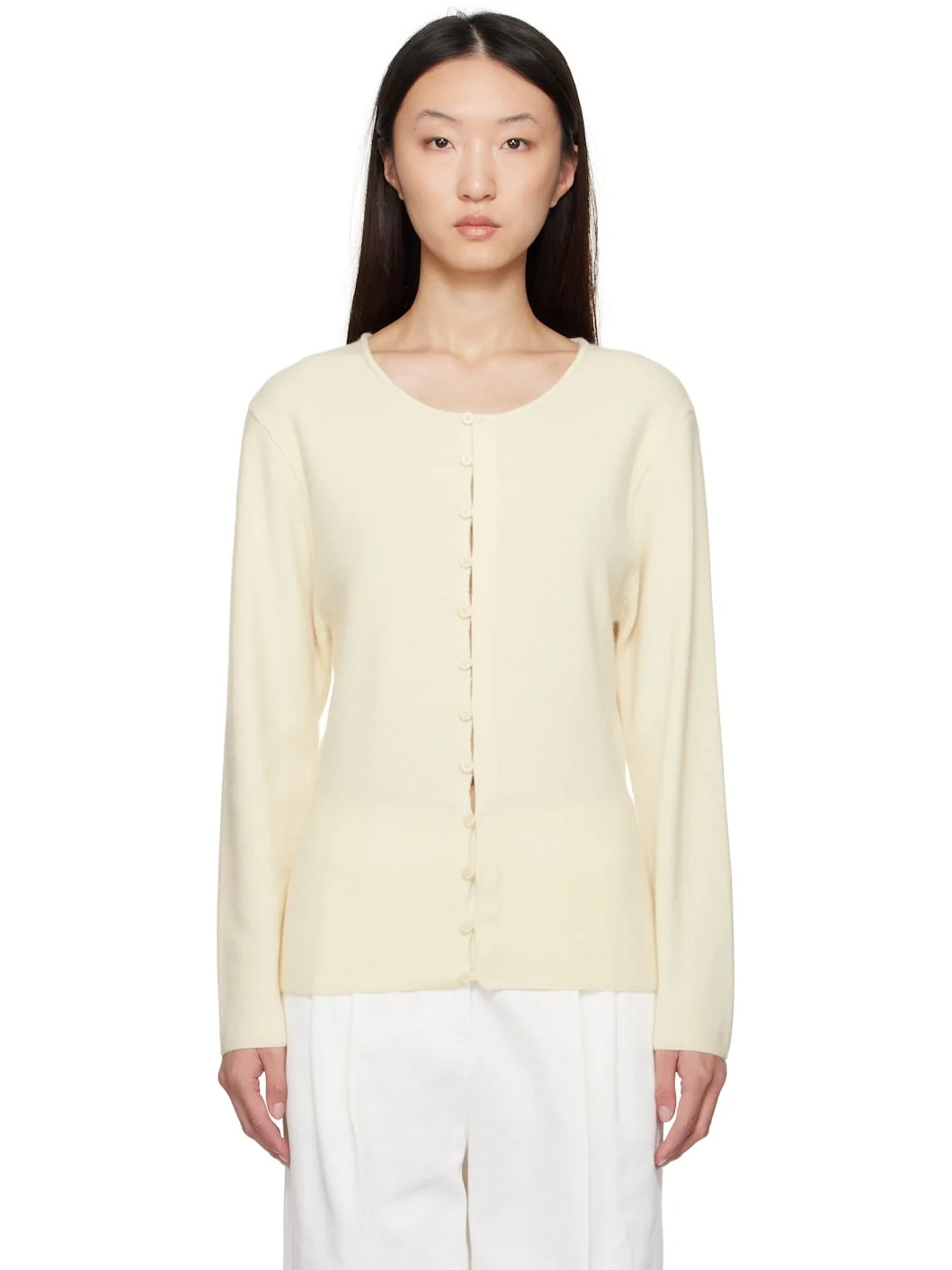 Knit wool- and nylon-blend cardigan. · Round neck · Button closure Supplier color: Ivory 65% wool, 26% nylon, 9% cashmere. Made in South Korea 252495F095000