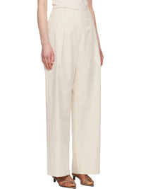 Cotton- and nylon-blend twill trousers. · Belt loops at partially elasticized waistband · Four-pocket styling · Zip-fly · Pleats at front · Welt pocket at outseams · Partial polyester taffeta lining Supplier color: Ivory Body: 66% cotton, 34% nylon. Lining: 100% polyester. Made in South Korea 251495F087002