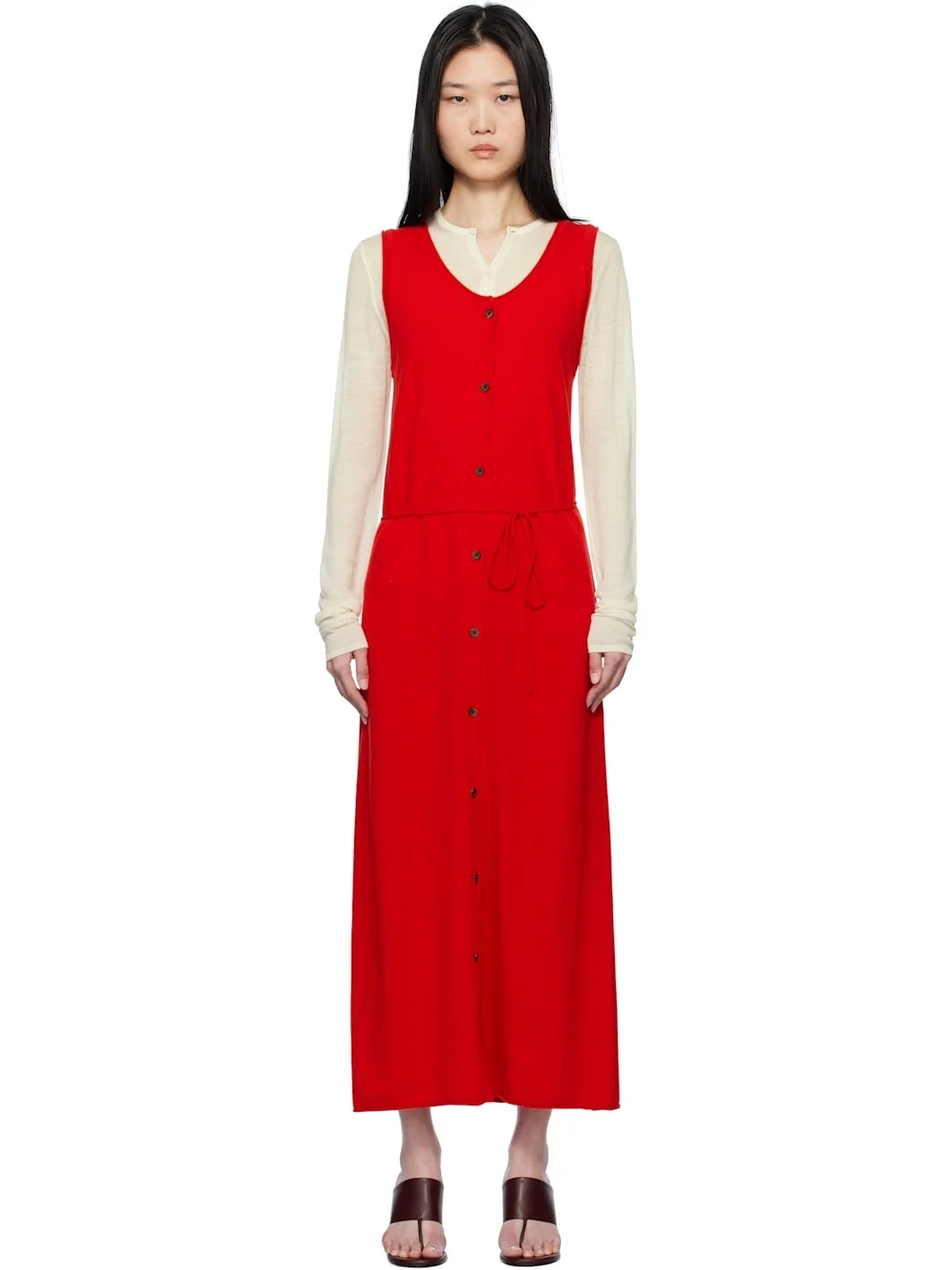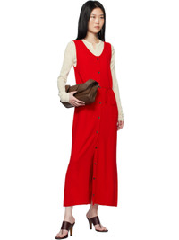 Knit wool-blend maxi dress. · Rolled edge at scoop neck, hem, and armscyes · Button closure · Detachable self-tie belt at waist Supplier color: Red 65% wool, 25% nylon, 10% cashmere. Made in South Korea 251495F055001