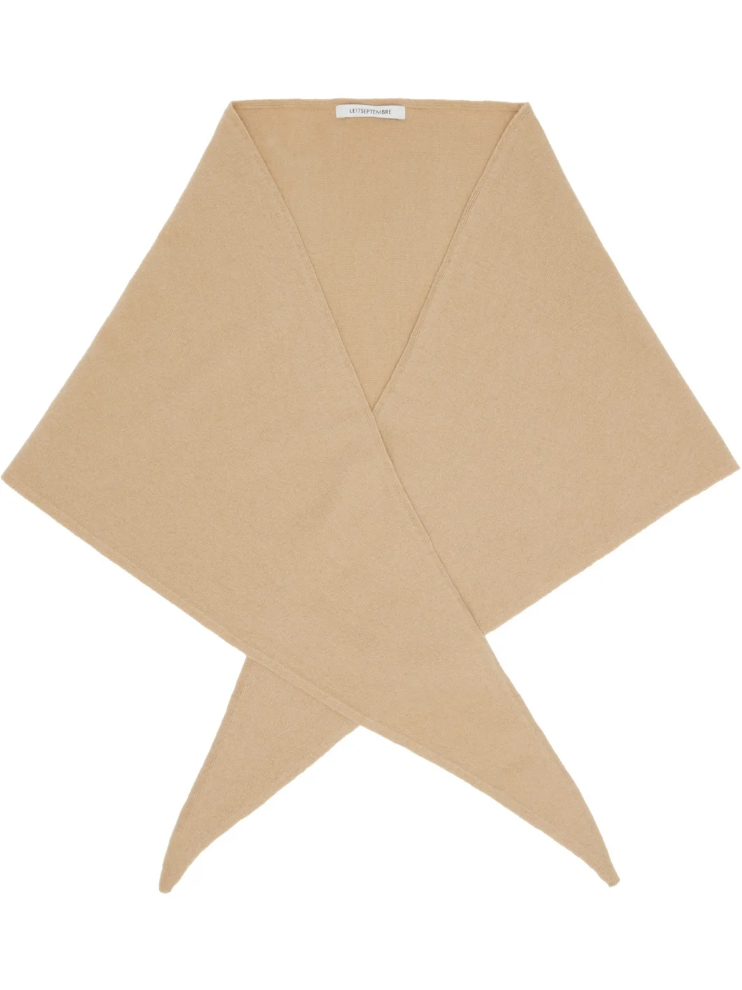 Triangular knit wool-blend scarf. · Pointed ends · H35.5" x W21.5" Supplier color: Camel 65% wool, 26% nylon, 9% cashmere. Made in South Korea 252495F028002