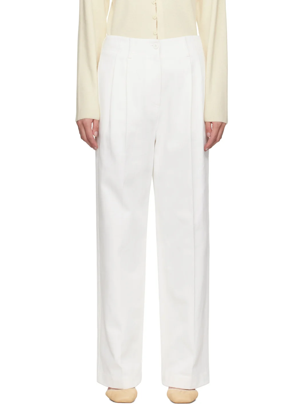 Cotton cavalry twill trousers. · Belt loops · Four-pocket styling · Zip fly · Pleats at front Supplier color: White Body: 100% cotton. Trim: 60% rayon, 40% cotton. Made in South Korea 252495F087002