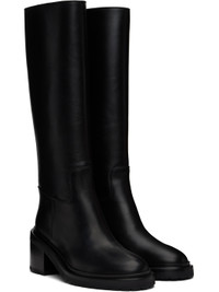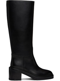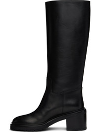 Knee-high buffed calfskin boots in black. · Buffed leather lining · Topstitching at welt · Stacked leather midsole · Stacked leather block heel with rubber injection · Leather sole · Heel: H2.5" Supplier color: Black Upper: calfskin. Sole: leather. Made in Italy 242448F115000
