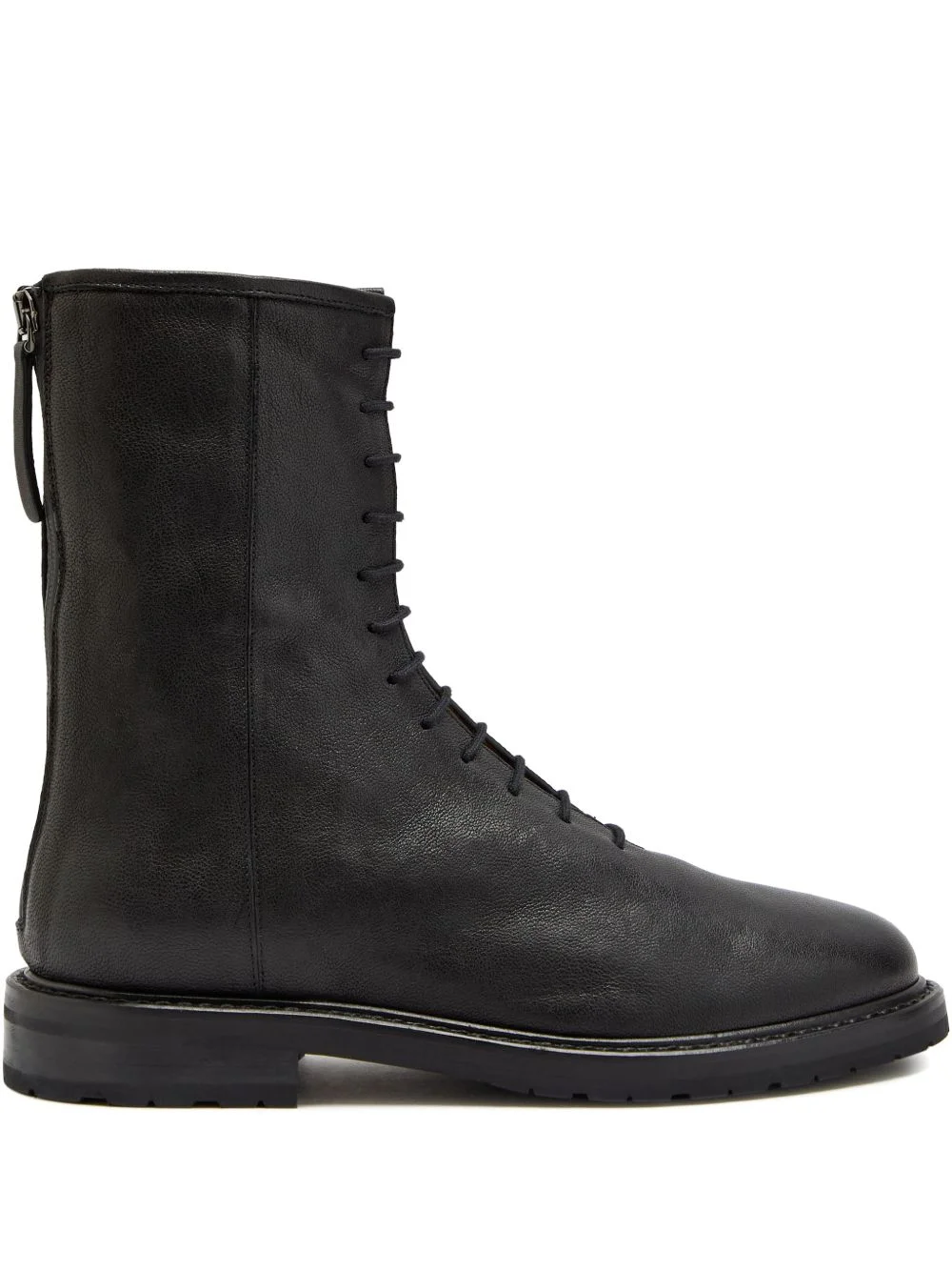 lace-up leather ankle boots Highlights - Black - Front lace-up fastening - Rear zip fastening - Pull tab at rear - Round toe - Flat sole Imported Composition Outer: Calf Leather 100% Lining: Calf Leather 100% Sole: Rubber 100%