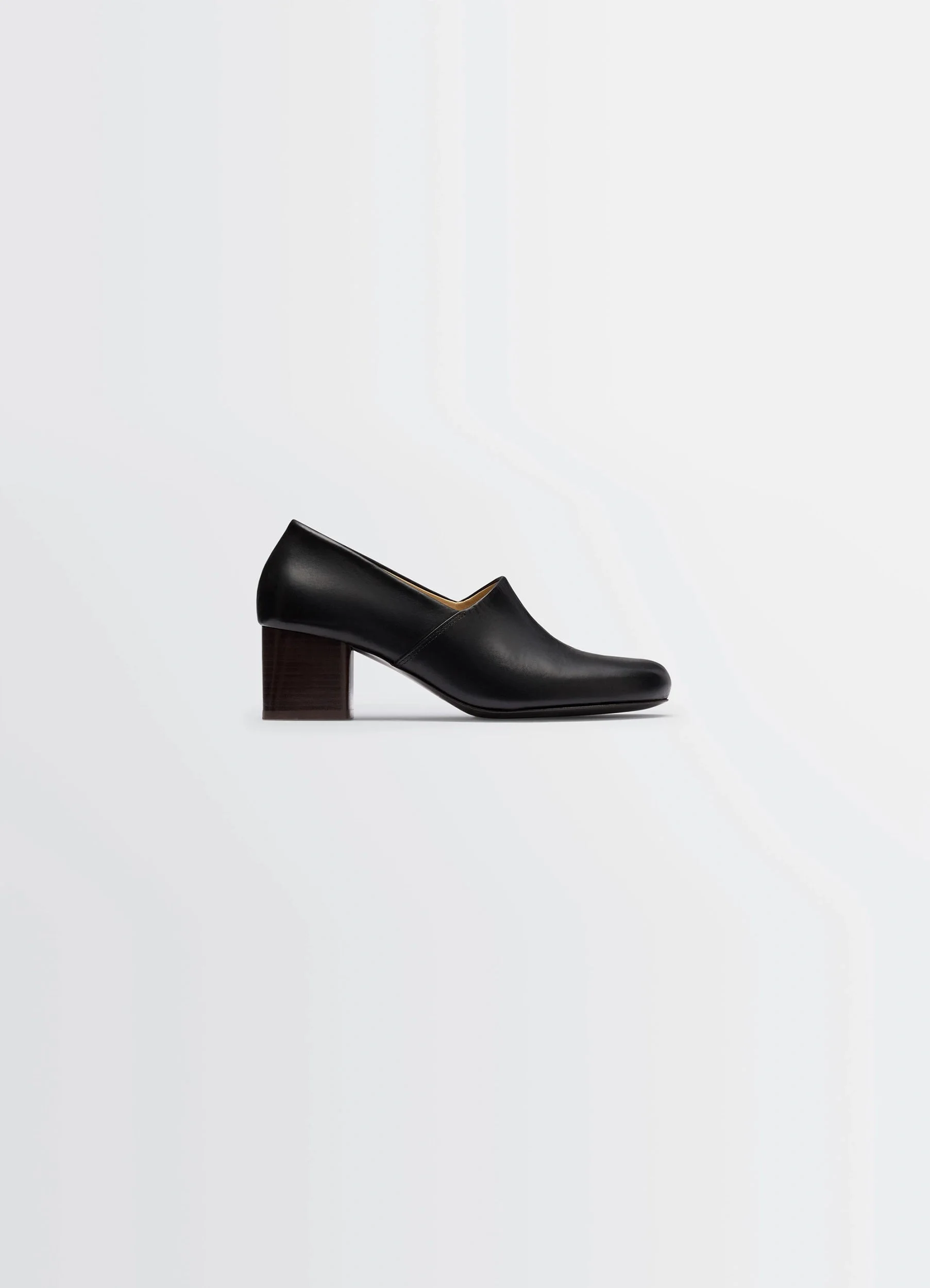 This new style complements LEMAIRE’S everyday footwear offering. These Anatomic Pumps are made in vegetable glossy leather with a soft hand and feature an elevated 55mm stacked heel. They feature a middle stitching detail, one of the signatures at LEMAIRE. They also boast a hidden platform sole at the front of the foot for added comfort and a confident walk. DETAILS - Vegetable glossy leather - Inner platform sole - Stacked 55mm / 2,5in heel Made in Portugal Style: FO0194 LL0078' FABRICS & CARE Main Material: 100% Cow Main Lining: 100% Cow